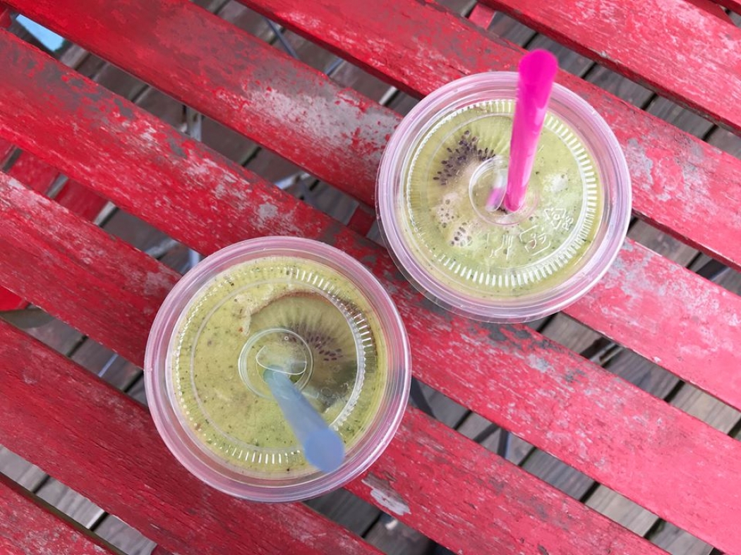 道の駅たるみずの目の前「マミーの店」で飲んだ野菜とフルーツのジュース。元気になります!