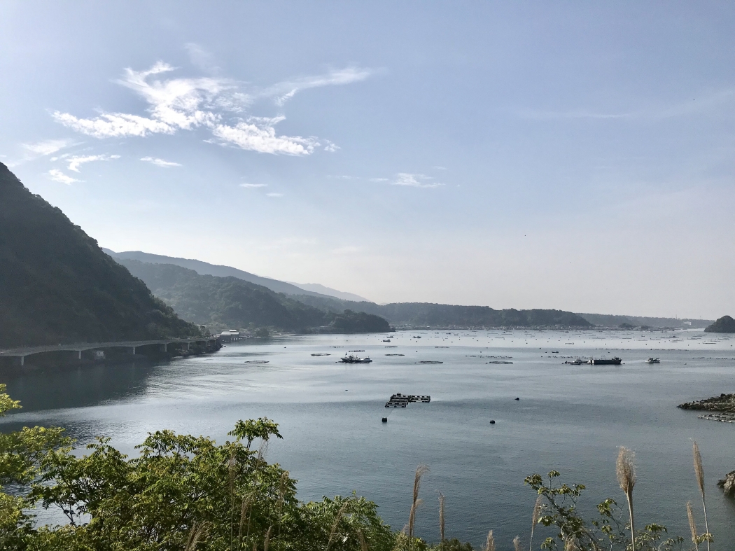垂水市のおだやかな海。カンパチの養殖もさかんです。
