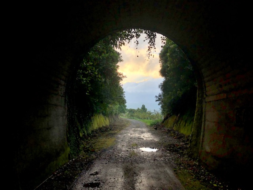 これはかつてあった鉄道のトンネルです。 大隅半島の志布志市の駅から国分市までを結び、真ん中あたりの垂水にも駅がありました。1987年に全線廃止になり、トンネルだけが密かに残っています。