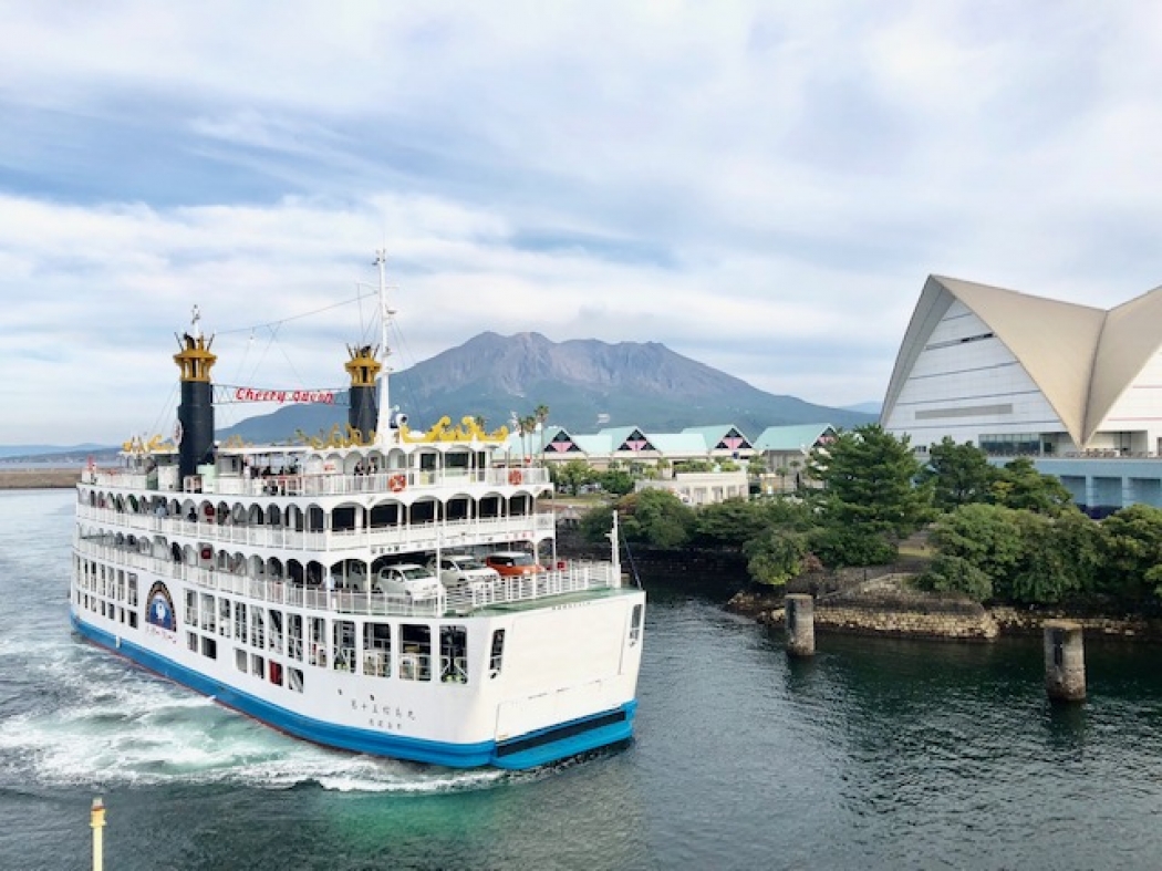 鹿児島市内と桜島を結ぶフェリーの中で最も豪華客船ぽいのが、この「チェリークイーン号」。24時間運行のフェリーですが、たったの15分しか乗れないのが残念。船内にある「やぶ金」のうどんは必食です!